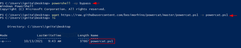 «Powershell execution policy» – это функция безопасности в Windows, которая определяет, какие скрипты могут или не могут выполняться в системе, поэтому нужно обойти это ограничение. Это позволит пользователю запускать любые скрипты. После этого следует скачать Powercat с помощью «wget».