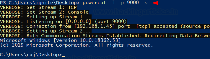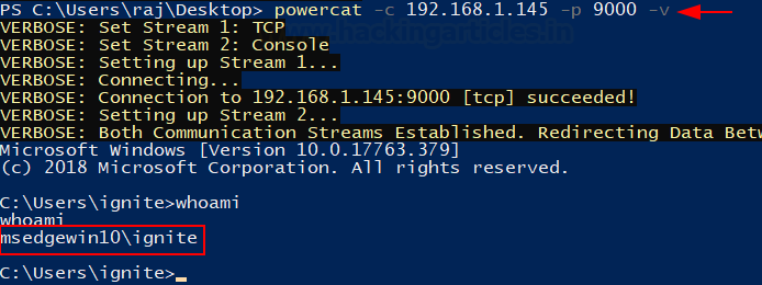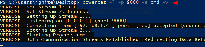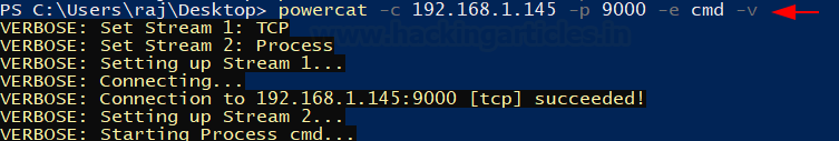 powercat -c 192.168.1.145 -p 9000 -e cmd -v