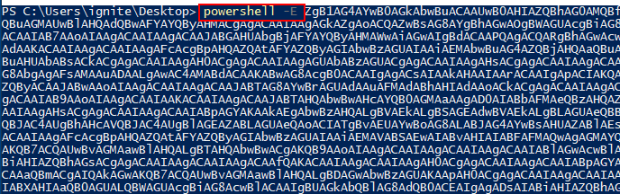 Затем shell можно активировать с помощью опции «powershell —E», что позволяет выполнять закодированную строку.