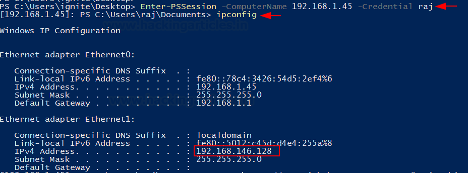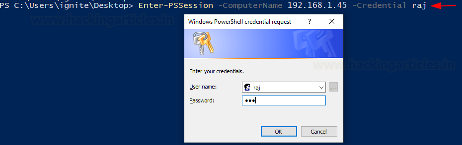 Enter-PSSession -ComputerName 192.168.1.45 -Credential raj