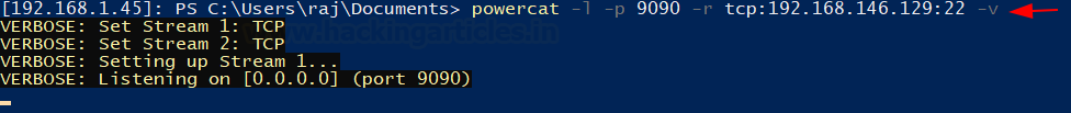 powercat -l -p 9090 -r tcp:192.168.146.129:22 -v