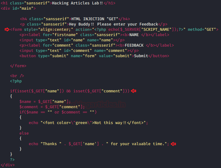 С легкостью показываются сообщения на экране, разработчик не устанавливал никакой проверки ввода, то есть он просто установил вывод «благодарственного сообщения», включая имя ввода через переменную “$_GET”.