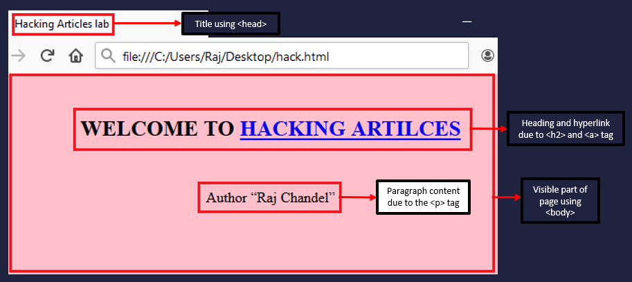 <center><h2>WELCOME TO <a href=”http://hackingarticles.in”>HACKING ARTILCES </a></h2>