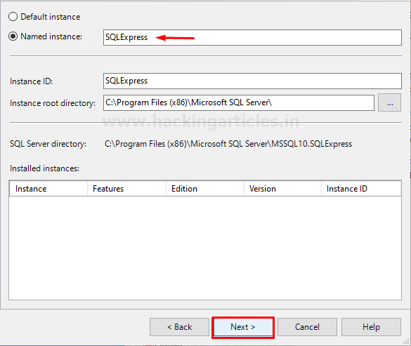 Теперь человек создает экземпляр с именем «SQL Express», как показано ниже на картинке.