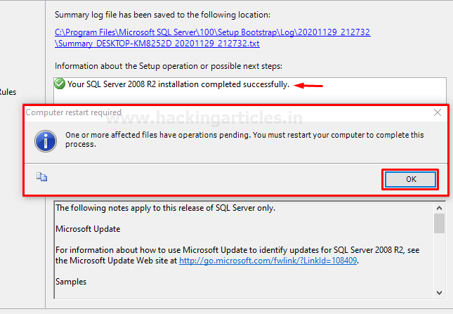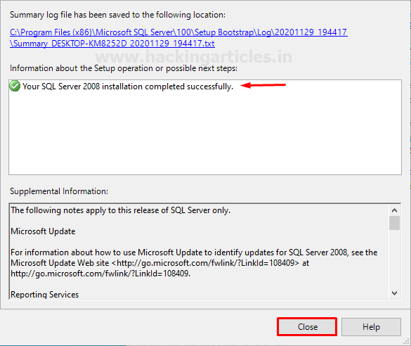 Как видно на картинке, пользователь успешно установил SQL Server 2008.