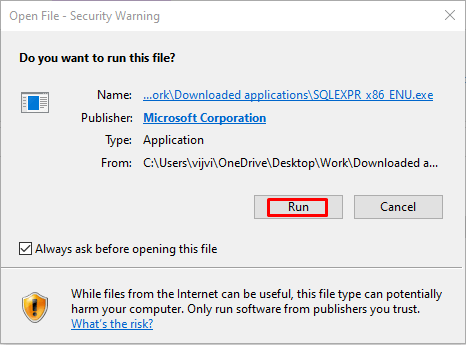 Итак, теперь пользователь загрузил SQL Server Express 2008. Нужно открыть файл и запустить программу.