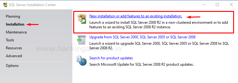Пользователь видит окно запроса как и в предыдущем случае с SQL Server 2008. Он выбирает новую установку.