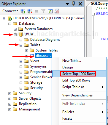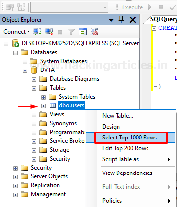 Теперь, когда пользователь вновь развернет раздел таблиц в DVTA, он увидит, что создается таблица под названием «dbo.users».
