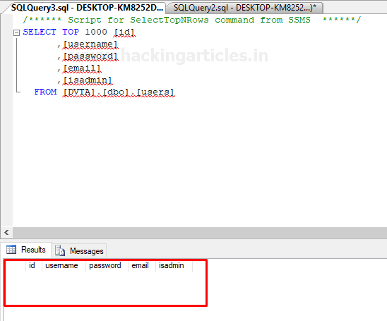 Когда пользователь разворачивает раздел базы данных, он может заметить, что существует созданная база данных с именем DVTA. Есть также системная таблица, в которой пока нет никаких пользовательских записей.