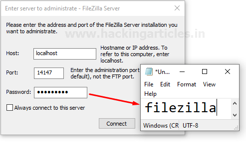 Пользователь вводит filezilla в качестве пароля и нажимает на кнопку «Подключиться».