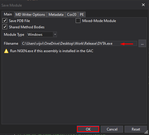 Можно закрыть приложение dnSpy и открыть измененную программу DVTA.exe, перейдя в нужный каталог.