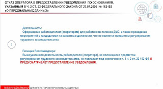 1. РКН продолжает считать, что трудовые отношения ограниченны исключительно Трудовым кодексом РФ. Все вопросы обмена персональными данными (прием на работу, взаимодействие с уволенным работником и т.д.), не описанными ТК РФ — это не в рамках трудовых отношений. И даже решение судей на эту позицию не влияет. Есть и другие законы РФ, которые относятся к трудовому законодательству. https://valerykomarov.blogspot.com/2019/08/blog-post_15.html