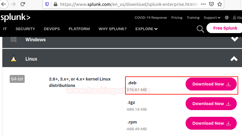 В этой статье пользователь нацелен на установку корпоративной версии, которая доступна бесплатно в течение 60 дней со всеми включенными функциями. Читатели могут скачать Splunk, перейдя по ссылке ниже.