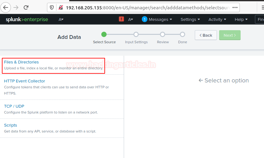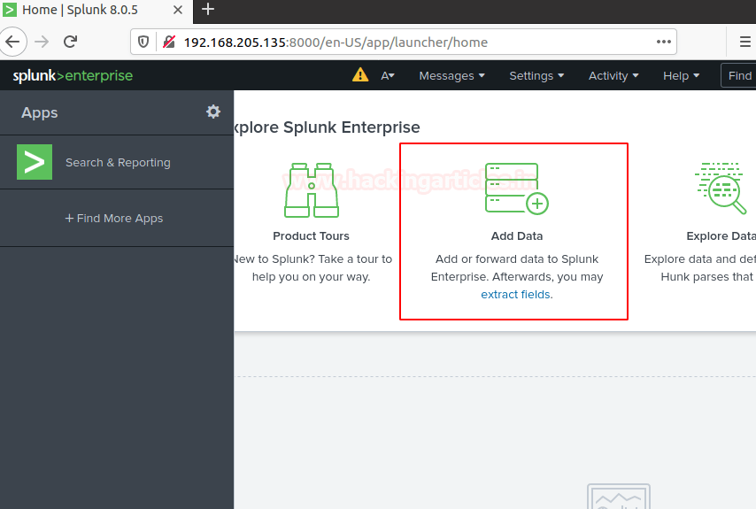 Следует запустить веб-интерфейс Splunk в любимом браузере и выбрать опцию “Добавить данные” для начала.