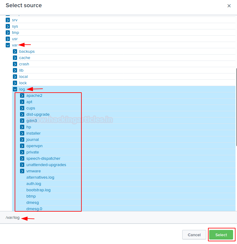 Теперь пользователь собирается просмотреть точный путь /var / log, который идет от сервера к монитору. Как только он это сделает, нужно выбрать следующую опцию.
