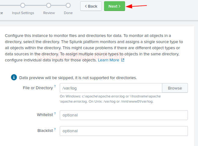 ./splunk add monitor /var/log -sourcetype linux_logs -index remotelogs