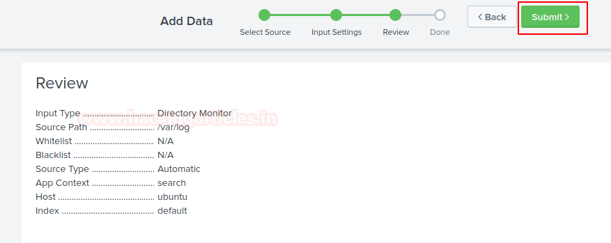 Чтобы переслать журналы на консоль мониторинга Splunk, следует просто открыть терминал и ввести следующие команды в каталоге установки Splunk с приведенными ниже аргументами.