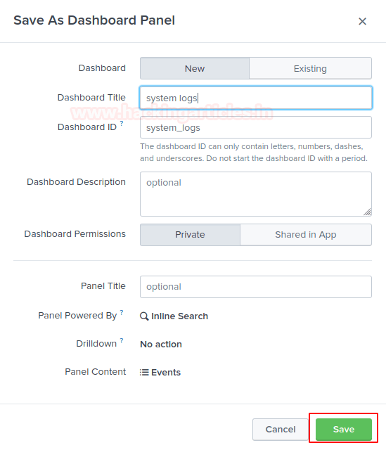 Пользователь также может добавить эту задачу непосредственно на панель мониторинга Splunk, выполнив следующие действия: