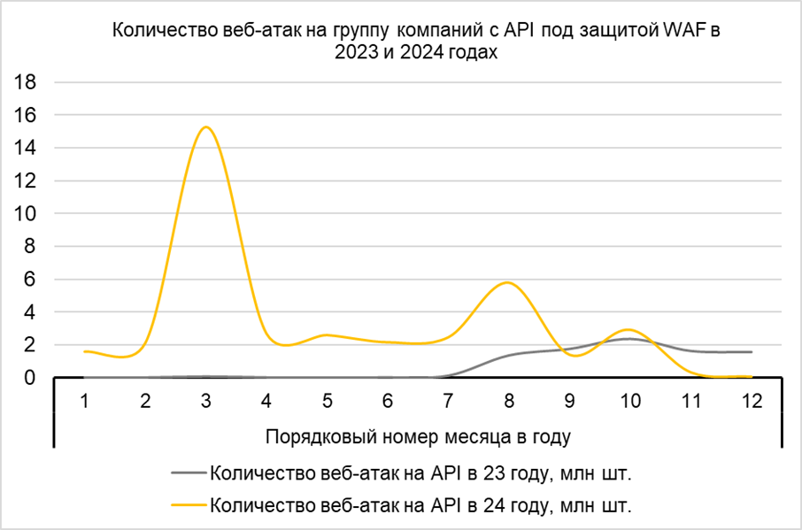 В частности, по данным специалистов «Солара» число атак на API российских компаний в 2024 году выросло более чем в четыре раза, с 9 до 39 млн. Основные всплески пришлись на март и август.