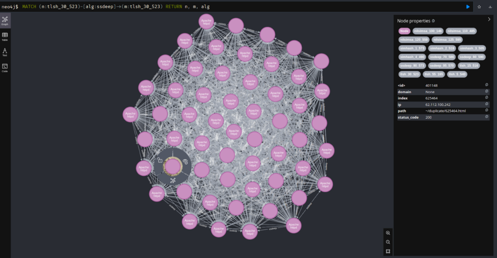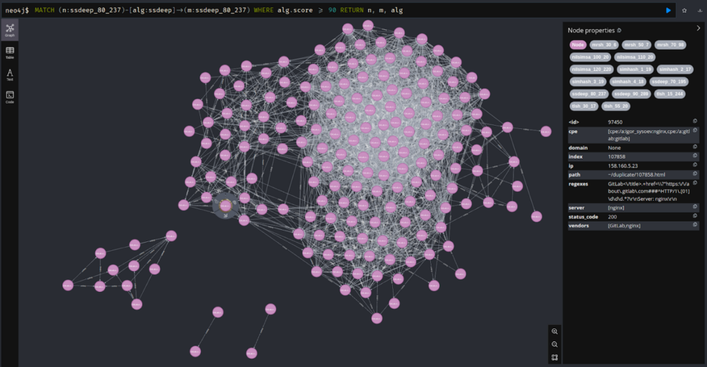 Также может быть интересно посмотреть на похожесть доменных имён дубликатов или исследовать кластеры, отобранные по менее тривиальной метрике, полученной из всего, что есть в ноде. В общем, можно ещё много чего интересного достать, главное придумать.