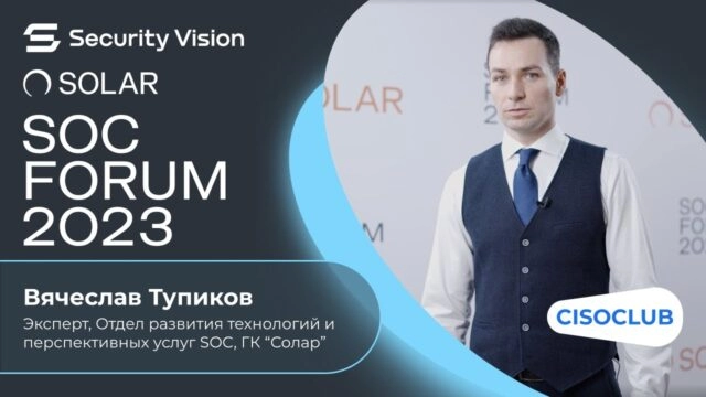 Редакция CISOCLUB посетила SOC FORUM 2023 и пообщалась с Вячеславом Тупиковым из ГК «Солар». Вопросы, которые мы задали: 0:24 Как должен быть организован процесс анализа угроз и реагирования на инциденты для обеспечения высокого уровня безопасности? 1:12 Какие инструменты стоит применять для анализа и корреляции большого объема данных по ИБ в SOC? 1:33 Какие механизмы стоит […]