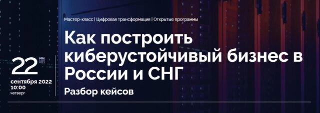 Мастер-класс «Как построить киберустойчивый бизнес в России и СНГ» состоится 22 сентября 2022 года в 10:00 (мск). Данные исследований партнера СКОЛКОВО «Ростелеком-Солар» говорят о беспрецедентном количестве угроз, с которыми столкнулся российский бизнес за последние полгода. Рост геополитической напряженности изменил и модель угроз: большинство новых кибератак направлено на нанесение максимального ущерба и резонансного эффекта. На мастер-классе […]
