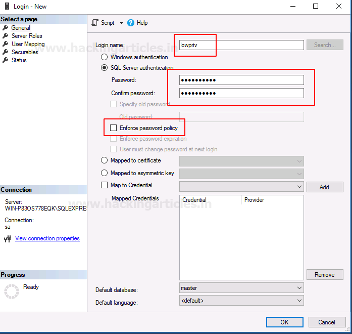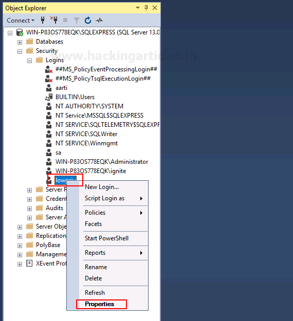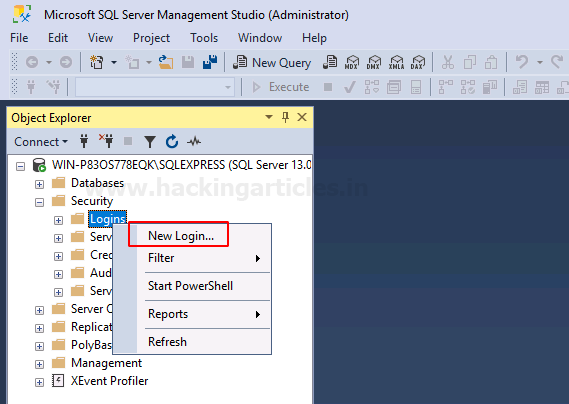 Чтобы узнать, как включить функцию «Impersonate», следует начать с создания нового пользователя. Пользователь переходит по следующему пути: «server>Security>Logins». Здесь он щелкнет правой кнопкой мыши на «Logins» и выберет опцию «New Login» из раскрывающегося меню, которое появится после щелчка.