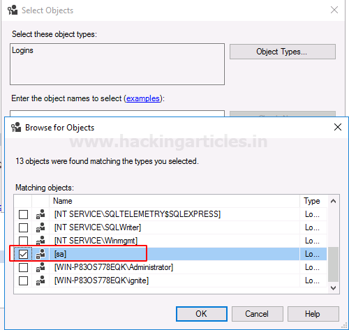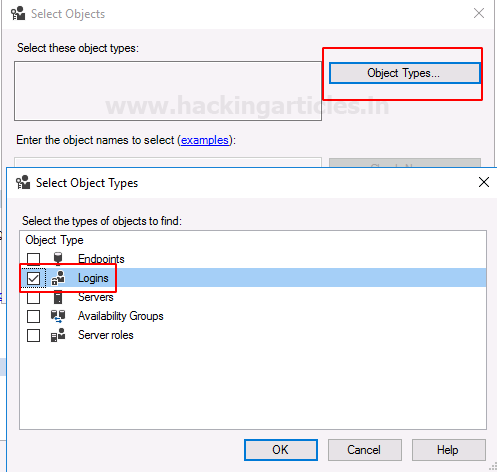Откроется другое диалоговое окно: в нем следует нажать на кнопку «Object Types», которая откроет другое меню. В нем пользователь выбирает опцию «Login», а затем нажимает на кнопку «ОК».