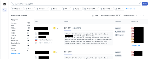 | Платформа | Запрос | Кол-во хостов |