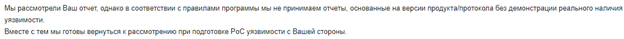 Также хотелось бы иметь инструмент для отслеживания статуса отправленных уязвимостей. Дошли ли они до вендора, когда будет ли релиз патча и т.д. Не хочется отвлекать сотрудников уважаемой организации, а сведения о патче, датах и реакциях вендора и еще много-много чего прочего очень нужны. Поэтому, надеюсь, в ближайшем будущем мы увидим какую-нибудь систему трекинга процесса идентификации, исправления уязвимости между исследователем, вендором и регулятором.