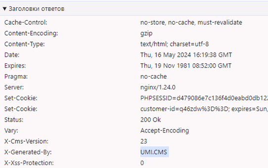 - артефакты в теле ответа HTML в корневой директории;