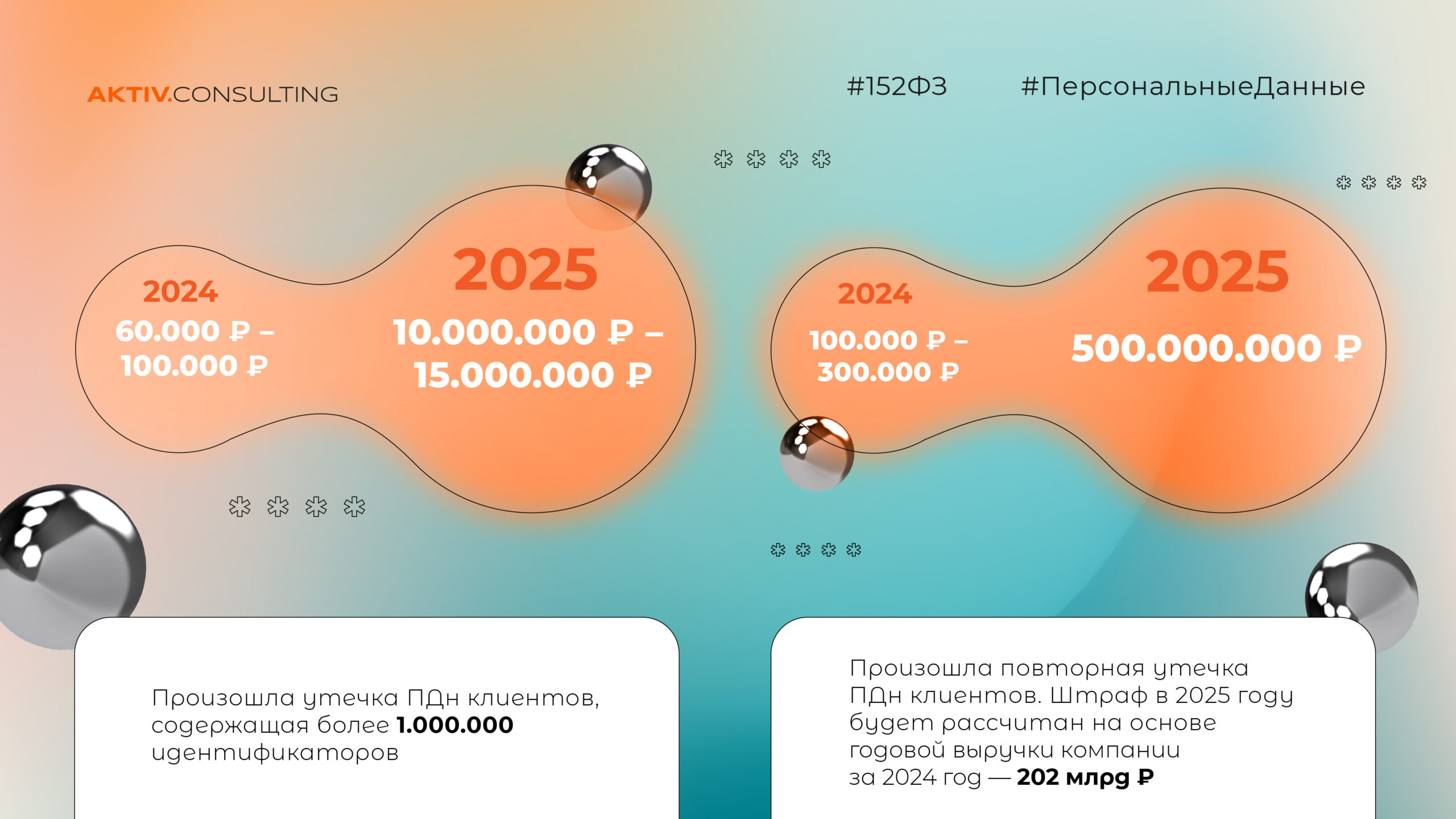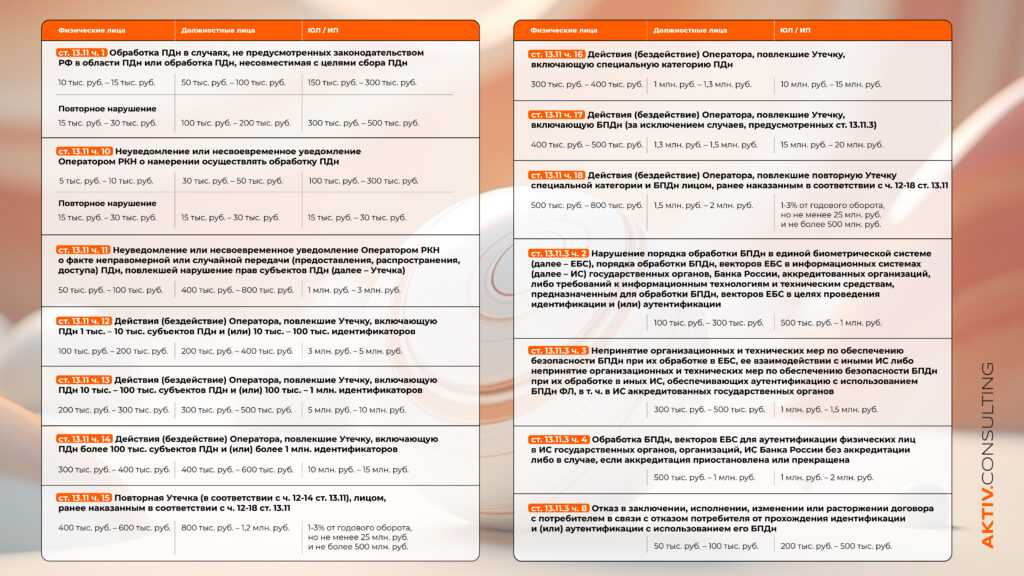 30 ноября 2024 года был принят Федеральный закон № 420-ФЗ, а 11 декабря 2024 года был принят Федеральный закон № 421-ФЗ. Положения этих Федеральных законов касаются ужесточения ответственности за административные и уголовные правонарушения в сфере законодательства РФ о персональных данных (далее – ПДн).