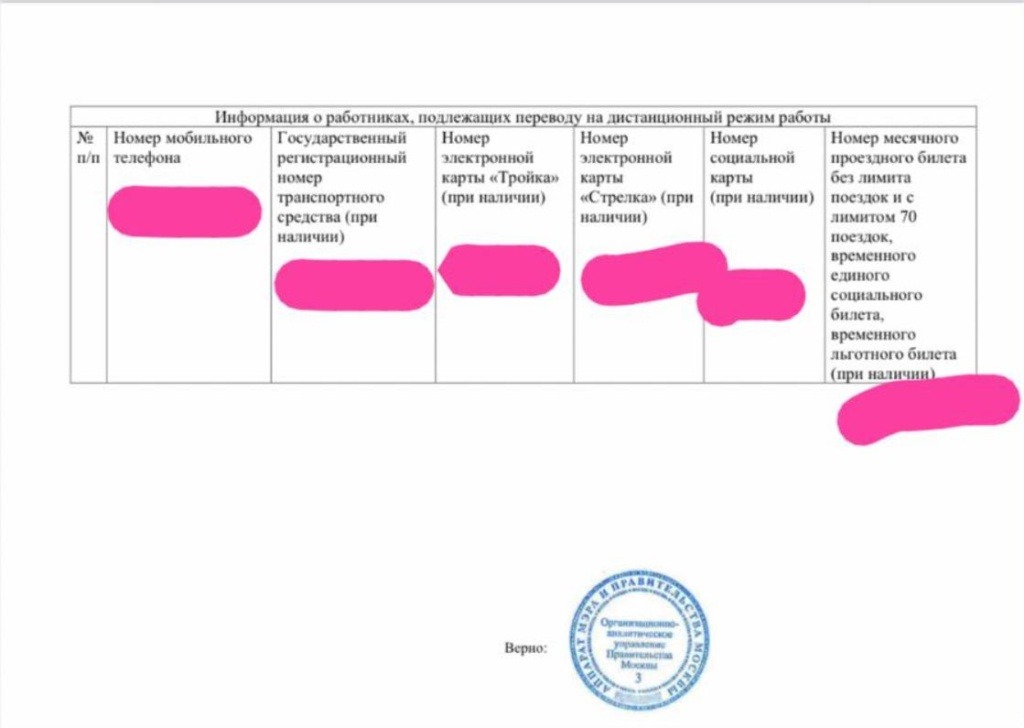 Власти Москвы обязали работодателей передавать личные данные своих сотрудников, переведенных на удаленку