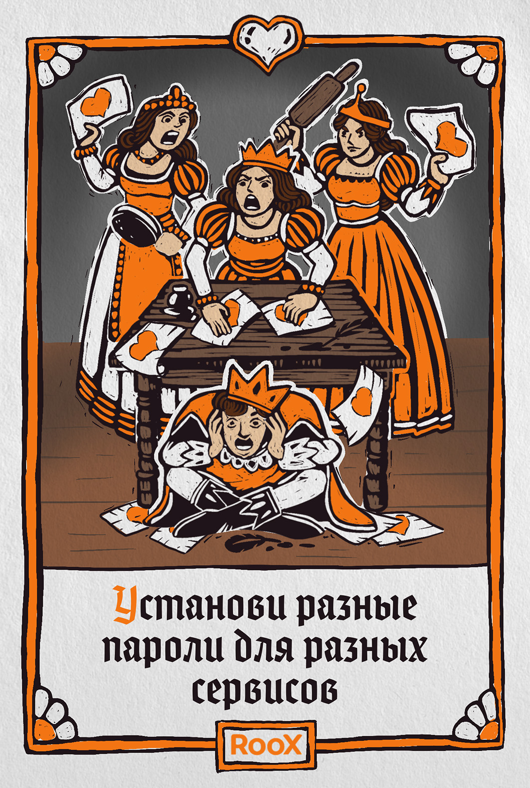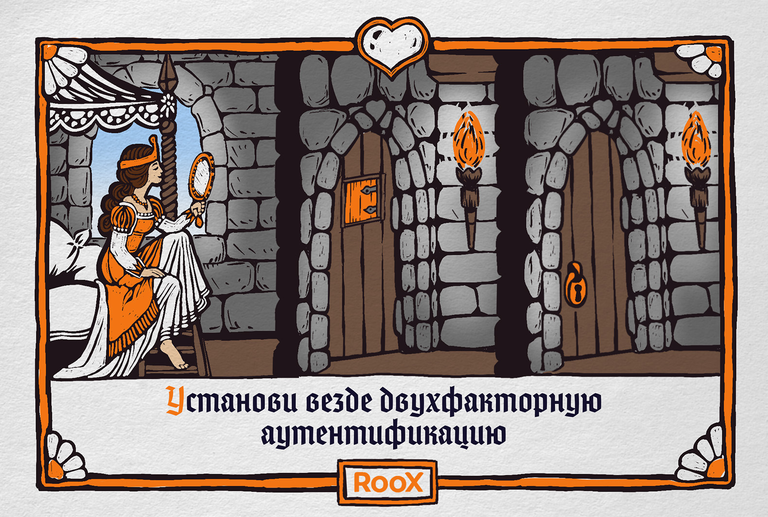 Компания RooX, которая специализируется на системах управления доступом для корпоративного сектора, выпустила серию карточек ко Дню святого Валентина. В ней авторы напоминают о правилах безопасного поведения в Интернете на примере рыцарей и прекрасных дам.