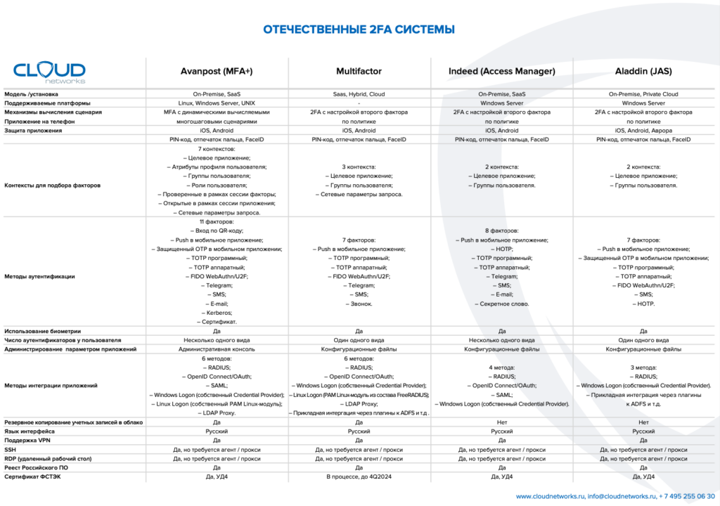Опыт интегратора Cloud Networks показывает, что выбор всегда зависит от задач, требований и инфраструктурных особенностей. Различные кейсы внедрений показали нам, что самое главное – найти все нюансы инфраструктуры, предусмотреть развитие, учесть взаимосвязи. И тогда выбрать своё идеальное решение из различных 2FA становится проще простого.