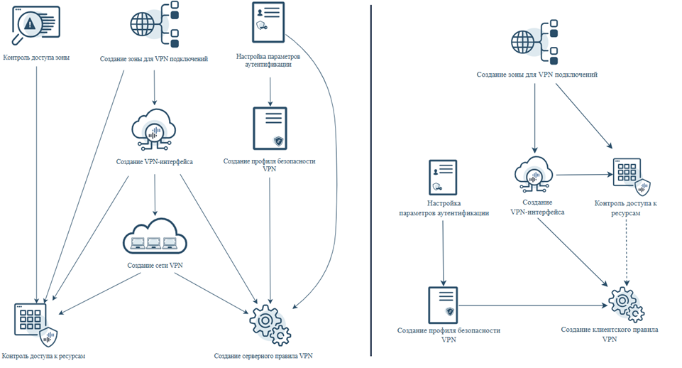 Функции VPN в UserGate DCWF предоставляет защищенный канал связи между удаленными пользователями и корпоративной сетью, обеспечивая безопасный доступ к внутренним ресурсам из любой точки мира. Встроенный VPN-сервер поддерживает современные протоколы, включая IKEv2 и L2TP, что позволяет гибко настраивать соединения под различные сценарии использования – от временного подключения сотрудников на удаленке до постоянной связности филиалов. Интеграция VPN с другими модулями безопасности UserGate DCFW – фильтрацией трафика, обнаружением вторжений и контролем приложений – позволяет реализовать централизованную политику информационной безопасности даже для распределенных команд.